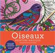 Six illustrations sur le thème des oiseaux dont les couleurs apparaissent grâce au passage d'un pinceau humide.