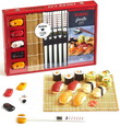 Un coffret pour réaliser des sushis avec un livre de recettes, des baguettes en résine, des porte-baguettes en céramique en forme de chat de couleurs différentes ainsi qu'un tapis à sushis en bambou.
