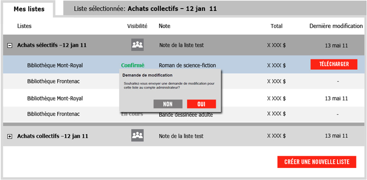 Il peut arriver que vous deviez modifier votre sélection même si vous l’avez déjà confirmée. Dans ce cas, vous devrez envoyer une demande de modification du compte principal. Pour ce faire, cliquez sur l’onglet «Mes listes» et sur le mot «Confirmé» de la liste à modifier. L'administrateur du compte principal recevra une annotation et pourra, s’il le souhaite, rouvrir votre sélection à distance. Vous pourrez alors modifier votre sélection et la confirmer de nouveau.