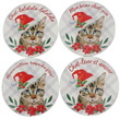 Ensemble de 4 sous-verres festifs illustrés d’un chat portant un bonnet du Père Noël et de jeux de mots amusants. Parfaits pour protéger vos surfaces tout en ajoutant une touche de fantaisie et de ... » Lire la suite...