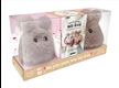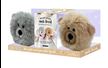 Coffret proposant deux bouillottes en peluche pour se réchauffer les mains en hiver. Elles sont accompagnées d'un livret fournissant des conseils pour les personnes souffrant du froid.