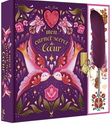 Un coffret sur la thématique de l'amour qui contient un carnet secret à remplir et à personnaliser. 1 cadenas et deux clefs dorées pour protéger ses secrets de coeur. 1 stylo plume à encre violette.