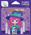 Dix cartes à gratter sur le thème de la magie : château hanté par des fantômes, petite sorcière, chaudron, entre autres.