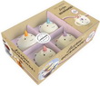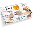Quatre tasses en forme de licorne accompagnées d'un livret contenant des recettes de mug cakes et des pages pour noter ses rendez-vous tout au long de l'année.