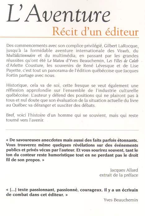 L'Aventure Récit d'un éditeur , FORTIN, JACQUES