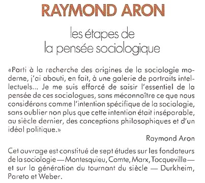 «Parti à la recherche des origines de la sociologie moderne, j'ai abouti, en fait, à une galerie de portraits intellectuels... Je me suis efforcé de saisir l'essentiel de la pensée de ces sociologues, sans méconnaître ce que nous considérons comme l'intention spécifique de la sociologie, sans oublier non plus que cette intention était inséparable, au siècle dernier, des conceptions philosophiques et d'un idéal politique.». Raymond Aron. Cet ouvrage est constitué de sept études sur les fondateurs de la sociologie - Montesquieu, Comte, Marx, Tocqueville - et sur la génération du tournant du siècle - Durkheim, Pareto et Weber..