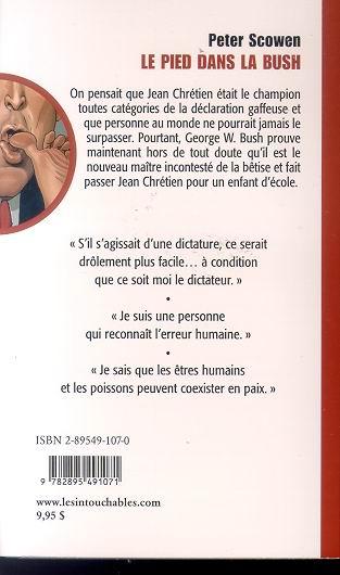 Pourtant, George W. Bush prouve maintenant hors de tout doute qu'il est le nouveau maître incontesté de la bêtise et fait passer Jean Chrétien pour un enfant d'école. " S'il s'agissait d'une dictature, ce serait drôlement plus facile... à condition que ce soit moi le dictateur. " " Je suis une personne qui reconnaît l'erreur humaine. " " Je sais que les êtres humains et les poissons peuvent coexister en paix.