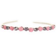 Bandeau rose avec nœud en tulle et perles, pierres précieuses et faux diamants.