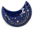 Vide-poche en céramique bleue en forme de lune, décoré d’étoiles et d’une citation inspirante. À la fois décoratif et fonctionnel, il permet de ranger vos petits objets du quotidien.
