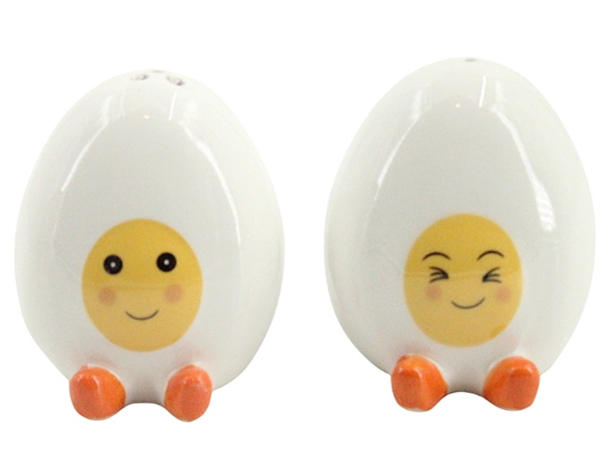 Ensemble de salière et poivrière en céramique en forme d’œufs souriants, apportant une touche amusante et originale à la table. Parfait pour égayer les repas du quotidien.